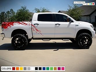 - Bubbles Designs Set of Side Bed Splash Mud Decal Sticker Graphic Compatible with Toyota Tundra 2007-2021 (RED)