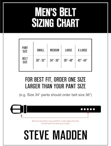 This classic casual dress belt by Steve Madden is designed for the versatile man and fits your lifestyle no matter who you are or how you wear it. The men's belt is made of bonded leather that is smooth to the touch and solid in construction. This Steve Madden belt is a great belt for jeans as well as a work dress belt. Madden's unique culture and product designs are inspired by their commitment to lead trends. The company's focus on "now-ness" has earned it rave reviews from men and women alike for their fashionable yet competitively priced products. The company popularized the notion of dressy-popular and continues to man the forefront of trends.