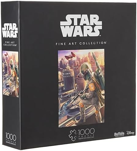 La Serie de Rompecabezas de 1000 Piezas de la Colección de Arte Fino de Star Wars está diseñada para el fanático de Star Wars. Presenta arte fino de Star Wars que captura el espíritu y los momentos de todos tus personajes favoritos. Este rompecabezas presenta a Boba Fett, el famoso cazarrecompensas, siguiendo a Han Solo, la Princesa Leia, Chewbacca y C-3PO mientras salen del Millennium Falcon debajo de la Ciudad de las Nubes. Cada imagen ha sido cuidadosamente seleccionada para crear una experiencia de rompecabezas satisfactoria, hasta el último pedazo. Cada rompecabezas Buffalo Games se fabrica con cartón de alta calidad 100% reciclado con la característica Perfect Snap™ de Buffalo Games. También se incluye un póster adicional del rompecabezas para que tengas una referencia práctica de cómo debería lucir el rompecabezas completado mientras lo ensamblas.