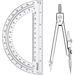 Drawing Compass and 6 Inch Protractor, Student Geometry Math Set