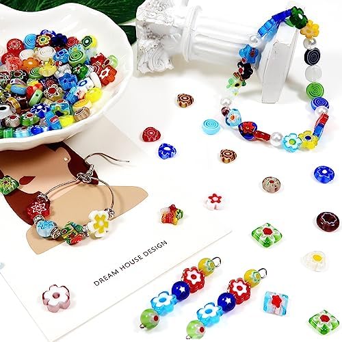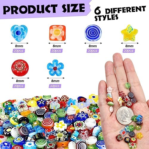 TOAOB 180pcs Assorted Lampwork Beads 8mm Glass Loose Spacer Beads for DIY Crafts Jewelry Making Bracelets Necklaces
