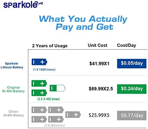 - Years of Use - Thanks to its 1000 times recharge cycle and 1% low self discharge rate, the Sparkole battery for Roomba could easily works for up to 2 years without problem, save you the trouble of replacing your ordinary Ni-Mh batteries every few months.( 1 Sparkole battery = 5 NiMH battery in terms of lifetime ).
