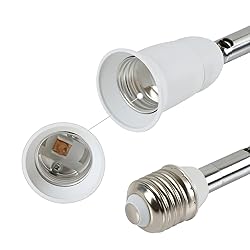 - Use this flexible extension to see any angle within 180 degree you want, making this area brighter. Wattage range: 0~ 60W. Please don’t use bulbs over 60W or the socket may burn out. Voltage range: 100~240V. Extender Type: E26/E27 to E26/E27 High-quality PBT& CE Certified. Please note: 1.To keep a stable bend angle, installation of bulbs. 2.Limited Weight:No more than 300G/10.5OZ. 3.This socket adapter is great for someone looking to place a light bulb near a wall. 4.This adapter helps the lamp to go down toward the floor or up toward the ceiling. Package Contains: 1*180 Degree E26/E27 to E26/E27 Base Converter
