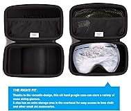 THE PERFECT BLEND: This ski goggle case is made to provide complete protection for your snow and ski goggles which is why we use a blend of premium 80% Hard EVA and 20% Polyester Fabric to make it compact, lightweight and scratch resistant while providing maximum durability and long-lasting performance making it ideal for every trip. ON THE GO PROTECTION: If you’re going for a ski trip or spending some time up north our snow goggle case is the perfect travel storage bag for goggles you the need. The carabineer-style aluminum alloy buckle conveniently attaches the ski goggles case to your handbag, tote bag or belt to carry your snow glasses, ski glasses, and hiking glasses. HIGH-QUALITY DESIGN: Our semi hard EVA ski goggle case is designed to look stylish, be convenient and easy to store. The inner lining won’t wear down and the high-performance YKK proof zipper won’t get stuck. This case is made to last the test of time which makes it the best gift for friends or family that enjoy skiing! Our exclusive EVA Ski Goggle Case features inner lining to store small ski accessories making it a must have for any skier that wants to be ready! THE RIGHT FIT: Thanks to the versatile design, this ski hard google case can store a variety of snow skiing glasses whereas the compact design doesn’t add any unnecessary bulk to your luggage. It also has an extra storage area in the overhead for easy access to lens cloth and other small ski accessories. Inside size: 7.8 x 4.1 x 3.5 inches - Outside size: 8.4 x 4.7 x 3.7inches. RELIABLE BUILD: We use hard EVA and polyester fabric to help guard goggles against scratches and minor bumps. Every case is checked before it ships, and your purchase is backed by our 60-day refund option.
