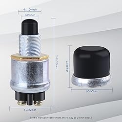 Características: interruptor de arranque momentáneo SPST. Un interruptor de pulsar para hacer vuelve a su posición normalmente abierta (apagado) al soltar el botón, esto se muestra con los corchetes alrededor de ON. Es el interruptor de bocina/encendido estándar. Unidad de repuesto de ajuste directo. Arrancador de motor tipo pulsador con cubierta de goma resistente a la intemperie, evita la entrada de suciedad, polvo y humedad. Este botón de inicio es fácil de instalar. Especificaciones: Material: aluminio fundido a presión y plástico. Dimensiones: longitud: 6,2 cm; ancho: 2,8 cm; tamaño del orificio de perforación: 1/2 pulgada; partes roscadas: 16 mm; voltaje: 12 V; corriente: 20 A; color: plateado; el paquete incluye: 1 interruptor de arranque de motor plateado.