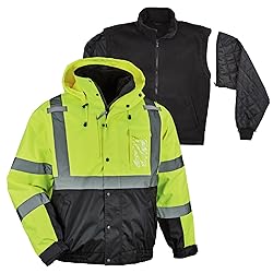 - The GloWear 8381 is a Type R Class 3, 4-in-1 Hi-Vis Winter Bomber Jacket that can be worn multiple ways for ultimate adaptability in changing weather. Zip out the liner to wear it alone as a lightweight fleece jacket, zip off liner sleeves for wear as a vest, wear the shell on its own as a lightweight weatherproof layer or leave the liner zipped in to wear as a warm winter work jacket. Ultra-warm 280g fleece traps heat for warmth in extreme cold, while a weatherproof 300D performance polyester shell with PU coating resists water and wind without compromising comfort or breathability. Built for long-lasting durability, this hi-vis jacket features a ripstop shell and dirt-hiding black panels. Compliant to ANSI/ISEA 107-2020, Type R Class 3 with 2 reflective tape for enhanced low-light visibility.