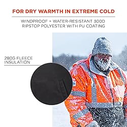 TEMPERATURE RATING - Temperature rating of 10°F // -12°C for up to five hours WEATHERPROOF – Windproof and water-resistant 300D performance ripstop polyester shell with PU coating protects from the elements without compromising comfort or breathability THERMAL INSULATION – 280g fleece body and quilted insulated sleeves for low bulk warmth in extreme cold MULTIPLE WAYS TO WEAR – Zip out liner for lightweight fleece jacket, zip off liner sleeves for fleece vest, wear shell alone as lightweight weatherproof jacket or zip in liner for a warm winter jacket HIGH VISIBILITY – ANSI/ISEA 107-2020, Type R Class 3 compliant with 2” reflective tape for low-light visibility BUILT TO LAST – Durable ripstop shell and dirt-hiding black panels for long lasting wear