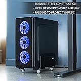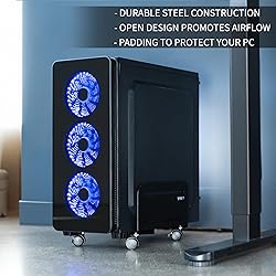 Fits 4.7" to 8.2" Wide PCs: Cart is adjustable from 4.7” to 8.2” allowing it to accommodate most ATX cases on the market. Note: Please check your PC case dimensions before purchasing to ensure that the width does not exceed 8.2" Easy Mobility: This cart features four caster wheels for smooth motion and convenient placement. Two of the wheels are lockable to keep the cart stationary when desired Sturdy Construction: High grade steel material makes the cart durable and keeps your computer secure. Also features a powder coated surface and inside padding that protects your case from scratches Low Profile: Matte black finish gives this product a simple yet modern design so it can blend well with a majority of environments. By holding your PC off of the floor, this cart will keep it clean and well ventilated Minimal Assembly: All necessary hardware and step-by-step instructions are provided for assembly, so you can get your new cart put together and improving your workspace in no time