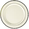 Nuestros platos de plástico premium color crema con borde dorado prismático son perfectos para bodas, bautizos, cumpleaños y fiestas! Cuentan con platos de plástico color crema con borde dorado. Miden 12". Incluye 10 platos por paquete.