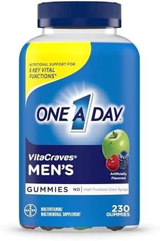 One A Day Men’s Multivitamínicos Gomitas, Multivitamínico para Hombres con Vitamina A, C, D, E, Calcio y Más para Apoyar la Salud de los Músculos, Gomitas, 230 Unidades