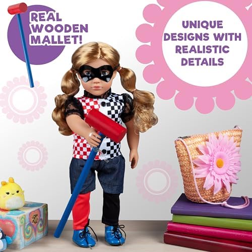 Disfraz de muñeca de Harley Quinn de Marvel Comics de Dress Along Dolly (juego de 7 piezas), disfraz de superhéroe DC para muñecas estadounidenses de 18 pulgadas, incluye ropa y accesorios