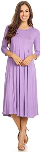 Women's Loose 3/4 Sleeve Midi Shift Below Knee Trapeze Dress Made in USA (Large, Lilac)