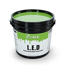 - SCREEN PRINT DIRECT - Best products. Best Prices. Buy Direct! Ecotex L.E.D. is the perfect all purpose photopolymer emulsion for Plastisol,water resistant, & solvent based inks. Specifically formulated with special Photo-initiators for use with L.E.D. Exposure Units. It is pre-sensitized and ready for use. Works great with Plastisol ink systems. Apply to clean, degreased, dried screen with a scoop coater. Be sure to use appropriate application techniques. Reclaiming Ecotex L.E.D. is easy with Ecotex Emulsion Remover. Shelf Life: 10-12 months Keep in a cool area, emulsion will break down much faster in heat. Keeping emulsion in a fridge can help to give a slightly extended shelf life, however, emulsion that has gotten to the point of freezing will no longer work properly and must be replaced. Keep the emulsion lid on tight to preserve air and light leaks. Gently mix the emulsion each time before use to help extend the life. For long runs use Ecotex Emulsion Hardener to extend the life of your stencil. To ensure best results, date your emulsion once mixed and keep an extra container on hand once the emulsion is about to expire* Have You Tried Our Other Products? - IJFD 5 MIL - Waterproof Inkjet Film Transparency - Ecotex Emulsion Hardener - Ecotex Emulsion Remover - Ecotex Emulsions - & More! USD In the Continental USA, Other Locations Prices Will Vary. Made In USA