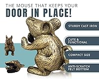 - Do you need a door stop for your home? Our decorative mouse doorstop will keep the doors open for you. It is made from recycled metal and coated with a special rustic finish, so it looks great in any room of your home. The mouse doorstop has a padded felt bottom to protect floors from scratches and conveniently fits under most doors while its weight keeps the doors open. We know that this isn't just another boring old door stopper - it's something special! And we want you to have one too! High quality, heavy duty metal makes this item durable and long-lasting so it can last through many years of use without rusting or wearing down like other products might do over time. The Cast Iron Mouse DoorStop will add charm and character to your home. It’s also great as an accent piece in any room of your house. You can use this decorative doorstop as a beautiful decoration that will compliment your home décor. This door stopper wedge has a unique, charming character and will amaze your relatives and guests. The metal door stop will stay in your family for generations. Door stops should be both practical and pretty because guests see them on their way to the house. You don't need to have a boring doorstep. Your home deserves elegant décor, even if it is as simple as a doorstop. They make perfect gifts for anyone who loves animals or wants to add some style to their home décor. For any occasion – This decorative door stop is a simple, yet thoughtful gift idea for any occasion: Christmas, Birthday, House Warming Party, Wedding, Mother’s Day – every house has doors and every door could use a decorative accent. You will not go wrong with this purchase!