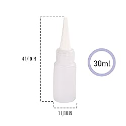 - Falling in Art Needle Tip Applicator Bottles Product Dimensions Total size: 4 inches L x 2 3/4 inches W Height: 5 inches Weight: 0.22 pounds Package Includes 6*30ml needle tip applicator bottle 1*funnel