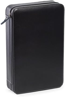 Black Leather Two Watch and Two Sunglass Travel Case with Form Fit Compartments with Zipper Closure. Leather Carrying Case Zipper Closure Scratch Resistant Velour Lined Stores Two Sunglasses Stores Two Watches 11.25"L x 7.25"W x 2.25"H