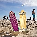 - A pastel yellow deck with light gray wheels. Complete with a sturdy plastic deck in a classic cruiser shape, lightweight trucks, ultra smooth bearings and soft wheels for cruising. Guaranteed for one year against manufacturing defects. Â Â 22 x 7 inch hefty plastic deck Classic cruiser shape 125 inch aluminum alloy trucks ABEC 7 carbon steel bearings 60mm 78A wheels HR85A bushings Complete board comes fully-assembled