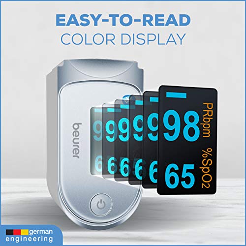 Beurer Bluetooth Digital fingertip Pulse Oximeter, Blood Oxygen Saturation & Pulse Rate Monitor with Accessories, 1 Count