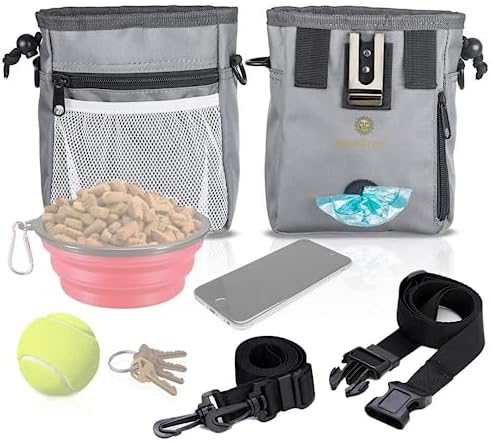- Convenient & Stylish Design --- Stylish in Silver Grey color, it is also intelligently designed with a perfectly sized storage compartment for all the stuff you need whether for a simple walk or outdoor training with your dog. You can also gift this stylish bag to your friends who are pet parents. To accommodate your dog training treats, it has 42” adjustable belt and belt clips on both sides and measures 7” (height) x 2.5” (depth) x 5” (width).