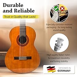 【DESIGNED IN GERMANY】Discover Germany's best-selling strings now! Belfort Guitar Strings combine Italian nylon's unmatched quality with our innovative Light Force Technology for a pain-free, comfortable playing experience. Enjoy a rich, full-bodied tone, crystal-clear highs, and balanced warmth. Fall in love with your guitar with Belfort nylon guitar strings! 【PAIN-FREE-PLAYING】Discover the revolution in nylon strings with exclusive Light Force Technology. Unmatched comfort and pain-free playing, thanks to advanced materials and precision engineering. Only available here. Play longer, play stronger, and feel the difference with Light Force Strings. Try them once, and you'll never look back. 【THE ALL-ROUNDER】Belfort acoustic guitar strings are specially made for maximum flexibility. Whether you play soft melodies, flamenco, fingerstyle, guitalele or heavy and extended chords our nylon strings for classical guitar will help bring out the best in your play. They are suitable for both beginners and seasoned professionals. 【EASY RESTRINGING:】Tired of struggling with restringing your guitar? We make it easy for you. With our clear step-by-step video guide in our eBook, numbered strings for simple installation, and an extra E-string included, you'll be back to playing in no time. Experience hassle-free restringing and unmatched comfort with our innovative nylon strings. 【SATISFACTION PROMSIE】At Belfort, your satisfaction is our top priority. If a string ever breaks or you're not completely happy, we’ll find a solution that works for you - hassle-free. We're committed to being the most customer-friendly company. Play with confidence, knowing we're here for you. Join American musicians who trust in German excellence.