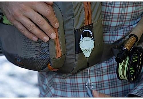 - Built in carabiner clip attaches to D-rings, Hypalon tabs, sternum strap loops, coated webbing, etc. on fly fishing packs and wading belts