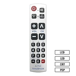 LuckyStar Big Button Universal Remote Control A-TV2, Initial Setting for Lg, Vizio, Sharp, Zenith, Panasonic, Philips, RCA - Put Battery to Work, No Program Needed