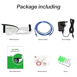 4MP HD NIGHT VIDEO With H.265: Orginal 3MP resolution has upgraded to 4MP HD and High FPS offers you Seamless Stream Night Video without Freezes with 3.6MM fixed lens offering night vision distance up to 20meters. H.265 Video Compression with efficient video recording to Save Storage Space and offer more Smoothly video the same time. POE IP Camera: Choose Wired Connection for stable using. Single cat5 cable for both Power and Data transmission, no need power adapter, optional PoE switch or injector, easy setup with plug and play. And SV3C Package with one useful power adapter, you can power on the ip surveillance camera by power adapter as another choice. Smart Motion Detection With Two Way Audio: New POE ip security camera support smart human shape recognition, motion detection alarm to phone APP Camhipro (Not App Danale) and Motion Detection Videos Store to NVR or SD card instead of paid cloud service. Support 24*7 all day record, don't worry about storage problems ! Poe camera built with microphone and speaker, hear voice when you playback the recorded videos. Onvif Compatible Work Well: The POE camera can work with NVR, Blue Iris, Ispy, Zoneminder, VLC ( But NVR firstly Confirm some brand NVR only work with its brand cameras) . View on Computer Client Software: HIP2P and App Camhipro. IP66 Waterproof & Service: Outdoor security camera has bulit-in all Aluminum Case with Solid Construction, that can work for longer time outdoor using without worried for bad weather (Outside temperature: -20C ~60C). SV3C provides Lifetime Tech-Support and 12-Month Warranty! Any issues with your SV3C poe security camera please contact SV3C customer service.