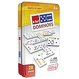 28 piece set of dominoes to teach counting with six dots Thick plastic dominoes make manipulation easy to play the game Collectors tin for easy storage Complete number matching six dot games Children will love the feel of learning with a real domino