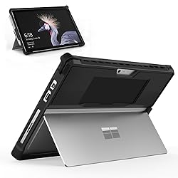- MoKo All-In-One Rugged Case - Well built to protect Your Surface Pro 7 / Pro 6 / Pro 5 / Pro 2017 / Pro 4 / Pro LTE for the years to come. Compatibility: Microsoft New Surface Pro 2017 Microsoft Surface Pro 4 Microsoft Surface Pro 3 Features: - Compatible with Type Cover Keyboard. - Built-in hand strap for carrying on the go. - Raised Bezel & Non-Slip Elastic Strap offers enhanced protection. - Surface Pen Holder Ensures a safe storage of your precious surface pen. - Made of Premium soft TPU and strong PC ensures protection and durability. - A unobstructed cutout specifically designed for surface kick stand, buttons, ports and cameras!