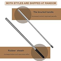 Application - Used to wind and unwind the tension on torsion springs. Dimension - Diameter 1/2" x length 16 3/4" and handle black. Material - High strength 45# steel and appearance galvanized. Benefit - Add a non-slip handle to enhance you safety. Note - There may be embossed handle and rubber handle due to product replacement issues. Both styles are shipped at random.