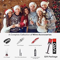GREAT VALENTINE'S GIFT for WINE LOVERS - Kato wine opener set provide everything you need to enjoy your favorite wine, The pretty outer sleeve with Gift package pattern wrapping on the box and the creative wine bottle shaped case make this a perfect gift choice for any wine lovers in Mother's Day, Father's Day, housewarming, birthday, holiday, wedding or anniversary. WINE OPENER SET (5 pcs) - Includes: 1pc multi-functional hippocampus knife, 1pc wine stopper, 1pc foil cutter, 1pc aerator pourer, 1pc silver glass paint marker all displayed in a wine bottle shaped gift case. REUSABLE GLASS MARKER STICKERS- This wine accessory set come with a static cling reusable drink markers set. Stickers are an ideal way to personalize your guests their wine glasses. Easy to use. Never drink from the wrong wineglass again! HIGH QUALITY & DURABLE MATERIAL - Made of stainless steel and heavy-duty aluminum alloy, each piece of this set is fully able to handle anything with ease CUSTOMER CARE PROMISE - We always provide excellent product and service to our customer. For any reason you aren't satisfied with wine bottle opener set, CONTACT US directly and we will take care of you. We love to help!