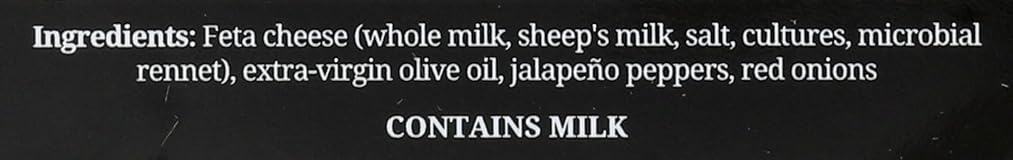 One 8oz container of crazy feta Produced in small batches in Laurel, MD Free of additives and preservatives Simply made, using fresh and quality ingredients