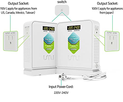 - 【Power Transformer】Energy saving, quiet and high efficiency. With our UMI 2400 Watts Step Down Voltage Converter, you can use your US 120v appliance or Japanese 100v electric device in UK, France, Germany, Italy and other countries use 220-240v power. Enjoy your life!