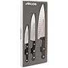 Juego de cuchillos ARCOS de 3 piezas de acero inoxidable. 2 cuchillos de chef y 1 cuchillo de cocina. Cuchillos de cocina profesionales para cocinar. Mango ergonómico de polioximetileno POM. Serie Universal. Color negro.