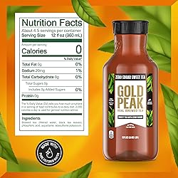 Gold Peak Teas are real-brewed bottled tea made from tea leaves picked for peak taste Delicious real-brewed tea with zero sugar and zero calories Made with high-quality tea leaves for iced tea flavor so refreshing it tastes homemade Caffeinated, sugar-free sweet tea bursting with natural flavors 52 fl oz bottle of Gold Peak Zero Sugar Sweet Tea