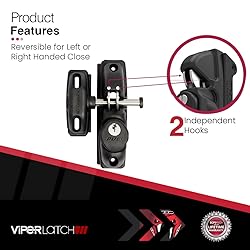 - DURABLE CONSTRUCTION TO LAST A LIFETIME From general-purpose gates around gardens to higher privacy and security gates you’ll find a Vinyl gate latch model for all jobs. All models of vinyl fence gates latch mount to most types of gates and gate materials, including metal, wood and vinyl. Double the security, double your peace of mind. FEATURES: ● Security Lock gate latch ● Reversible Mounting for Right or Left-Handed Installation ● Rust and corrosion proof gate latch ● Industrial-Strength Polymer Construction ● Vertically and horizontally adjustable gate latch ● Perfect for variety of gates ● Independent latching gate latch HORIZONTAL & VERTICAL ADJUSTMENT GATE LATCH: 2 Independent Latching vinyl fence hooks Safetech's groundbreaking Viper Latch is the most innovative pedestrian privacy gate latch available. Its patented back plate lets you shift from right hand to left hand operation in seconds with no screws required. Components can be lined up perfectly on wood, metal or vinyl gates because they can be moved horizontally and vertically making last-minute adjustments a snap. RUST & CORROSION PROOF: Saving you time and money. Pull-to-open action eliminates all external levers. Fail Safe Design. No openings that allow dirt, rain and other debris to invade the lock and damage performance. 2 independent latching hooks. Limited Lifetime Warranty High grade polymer and stainless-steel construction. METAL, WOOD & VINYL GATES LATCH: Safetech vinyl gate latch is made for securing metal, wood and vinyl gates. Our gate latches and Locks offer versatile closing solutions for new or existing gates. The tough and durable latch is made from strong, rust-free polymers and stainless-steel components. Key lockable and will not rust or stain, they are remarkably easy to install. PRODUCT DIMENSIONS: Weight: 1.3lbs Size: 7 x 5 x 3 inches