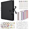 GOTIDEAL 80 Pages Scrapbook Album with 10 Metallic Markers,Craft Paper Photo Album for Wedding and Anniversary, Family DIY Scrapbook Accessories with Scrapbooking Stickers Corners(Black)…