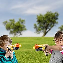 LIGHTS 'N' SOUND GALORE: Kids will go crazy over this super cool 9.5” pistol toy that lights up and blasts awesome sounds. Some toy guns can just either display some lights or produce sounds, but this toy can do both. And batteries come included to make it ready to go right out the box. READY, AIM, FIRE: The fast action trigger makes things happen in just a snap. Pull the trigger, and BOOM – the uber-cool electric kids’ toy gun releases a dazzling display of bright lights accompanied by firing sounds that make it an exciting experience. It sure is an amazing excuse to go out and play with family and friends. SAFE FOR CHILDREN: Made with the highest standards, this LED light up toy gun is durable and safe for use by kids. It is crafted from premium quality plastic and with an ergonomic design for easy handling. The bodacious barrage of sound can get pretty loud, so just place some putty around the speaker if you wish to tone it down. GREAT GIFT IDEA: Whether you need a gift to give your child for the holidays, Christmas, birthday, or a reward for doing great in school, this toy pistol for boys and girls makes an unforgettable present. It’s also an awesome gift for that adult who’s a kid at heart and a fun-lover at spirit. BUY WITH CONFIDENCE: Enjoy knowing we’re here to support you. Not satisfied with these toys? Don’t worry, we’ll gladly send you a replacement. Click ‘Add to Cart’ now to spark smiles with complete peace of mind!