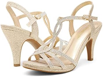 DREAM PAIRS Women's Kitten Heels Open Toe Stilettos Rhinestone Heels for Dressy Wedding
