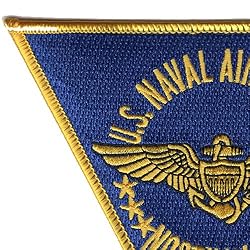 - US Navy NAS Naval Air Station North Island CA Patch - It is located at the northern end of the Coronado peninsula on San Diego Bay. It is also the home port of several aircraft carriers of the United States Navy. - Blue background with yellow edging and yellow flight wings. * Iron On Backing * Height: 4.75 inches, Width: 5.00 inches * Shape: Triangle * Edging: Merrowed Edge