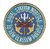 - NORFOLK US Naval Station Virginia Military Patch AD REM CLASSEM PARATUS - A base of the United States Navy, supporting naval forces in the United States Fleet Forces Command, specifically those operating in the Atlantic Ocean, Mediterranean Sea, and Indian Ocean. - Blue and light blue background with two crossed anchors and an upright trident bound by rope. * Iron On Backing * Height: 4.50 inches, Width: 4.50 inches * Shape: Round * Edging: Flat Edge