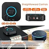 [3D Audio Surround] 3D Audio can be switched on or off with a single "3D" Button press. The Green LED will be on when switched to 3D Audio, listen music through your perfect sound Surround system from your smart phone or tablet. [One upgrades all, multipoint Bluetooth] with this audio Bluetooth receiver it is easy to play High fidelity audio wirelessly from any Bluetooth. The hafiz Bluetooth audio receiver can connect two smart phones at the same time to stream audio wirelessly [Instant sound] enjoy a latency lower than 97% of other devices with apt Low Latency technology; end-to-end lag time is now 40 milliseconds so high-definition video is transmitted without problems in transmitter mode [Easy setup, easy to use] Plug the Bluetooth audio adapter into an AC power source. Plug into computer speakers, home stereo systems or other speaker systems via 3. 5 mm audio cable or RCA cable, Pair with the Bluetooth audio devices such as Smart phones or tablet [Enjoy audio wirelessly In-Home Stereo systems] The REIIE Bluetooth audio receiver add Bluetooth signal for music streaming to those speakers or home stereo systems that doesn't have the capability