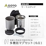- ● Mug combo is convenient to use due to the different material of the mug. Set of 6 mugs 13.5 fl oz (400 ml), 11.8 fl oz (350 ml), mug lid, joints, lifter (handle) and Cozy (thermal case). Can be used with both single and double mugs depending on the application. Convenient to use as a simple cooker for when you can eat by simply boiling water such as freeze-dried foods. By stacking 11.8 fl oz (350 ml) and 13.5 fl oz (400 ml) mug, you can use it as a double wall mug to ensure heat retention and cold retention. The mug can be heated directly with a stove, so it can be reheated. The 11.8 fl oz (350 ml) mug can be stored with the included lifter (handle) and SOTO single stove.