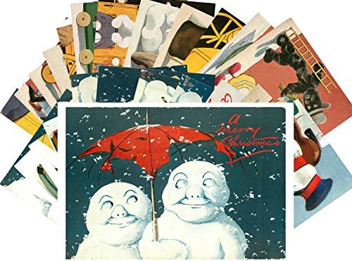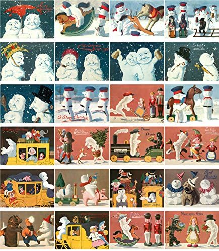 PIXILUV Vintage PostCards 24 pcs Snowman and Toys Vintage Kids Book Illustration Art