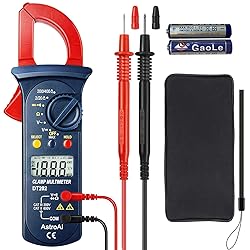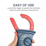 2000 COUNTS CLAMP METER:Check out our VIDEO on the left side and take a quick tour of AstroAI Multimeter! TEST A WIDE RANGE of measurements including AC/DC Voltage, AC Current, Resistance, Continuity; Also Tests Diodes. AUTO POWER OFF SAFELY:The amp meter's sampling speed of 2 times per second; If the meter is not in operation for 15 minutes,it will turn off automatically.Auto off conserves battery life and increases the lifespan of your multimeter. CONVENIENT FEATURES: Included Data Hold/Max Hold and a Large, Digital LCD Display, and Extra Large Clamp make for easy use while on the job; Low Battery indication keeps unwanted surprises at bay so you never accidentally run out of juice SAFETY FEATURE: Transformer Jaws pick up AC Current flowing through the conductor, increasing safety while improving this Multimeter’s capabilities. EASILY CARRING AND DURABLE:Commercial settings where it can handle the demands of a long workday, from the durable exterior to the wide range of heavy- duty functions.