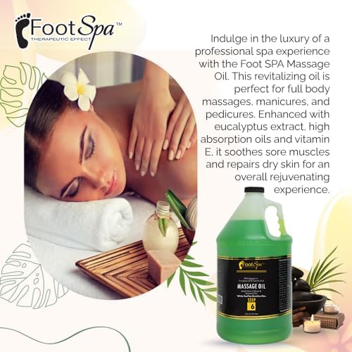 Foot SPA - Massage Oil, Eucalyptus Extract, 128 Oz - Professional Full Body Massage Therapy, Manicure, Pedicure - Relax Sore Muscles and Repair Dry Skin, Enhanced with High Absorption Oils, Vitamin E