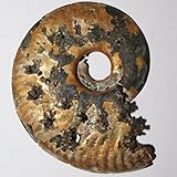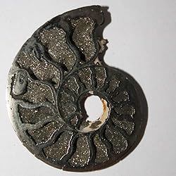 - Pyritized AmmoniteThis is not a slice. This is volume ammonite.Ideal for attachments, as a cab or a focal piece for your beadworkSize: 40x33x3 mmOrigin: RussiaToday the best Ammonites are found on the banks of the Volga River near the Russian cityof Ulyanovsk (formerly Simbirsk and the birthplace of Lenin). These stunning cabochonsare the result of Pyrite replacing the original bone structure of the Ammonite. There arevarious shades of brown, beige, black, tan and white. Throughout many of the pieces areswirls and pockets of Pyrite drusy.