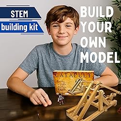 Build a Real Working Catapult – Launch projectiles over 15 feet with this hands-on STEM kit inspired by Roman siege technology. Perfect for curious minds ages 8+. Fun Educational Experience – Learn about ancient warfare, physics, and engineering as you assemble this historically accurate model from precision-cut wooden pieces. No Tools Required – Includes everything needed for assembly with pre-cut, eco-friendly wood pieces, elastic bands, glue, and clear illustrated instructions. Engaging STEM Learning – Great for classrooms, homeschoolers, or family time. Encourages problem-solving, fine motor skills, and hands-on experimentation