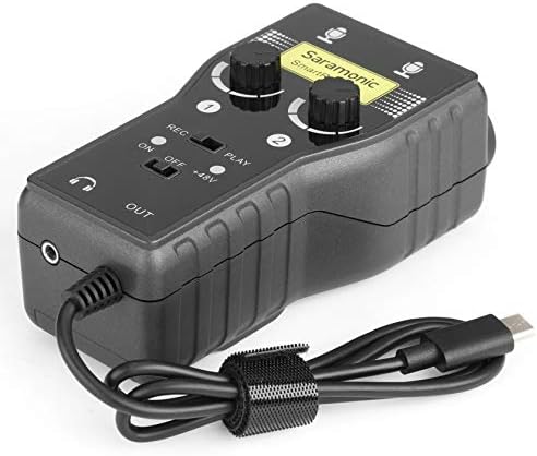 The Saramonic SmartRig+UC is a portable two-channel microphone, guitar instrument audio interface for USB Type-C devices. It is designed to let you record professional quality audio by connecting professional microphones, guitars and other instruments to your smartphone, tablets, PCs and more.The SmartRig+ UC from Saramonic is an easy solution to connect any professional microphones to any USB Type-C Devices and Guitar INPUTS: Two 3-pin XLR, Two 3.5mm (TRS), Two 1/4 (Guitar); OUTPUTS: One USB Type-C Output Connector PHANTOM POWER: +48V Phantom Switch Provides Power to XLR Inputs Mono/Stereo Switch, Independent Gain Controls for 2 Channels, Headphone Playback Monitoring Jack Two independent channels allow you to connect and control gain on multiple microphones, guitars or instruments at the same time. The interface also features 3 types of inputs to accommodate any set up; two XLR mic inputs that combo to 2 1/4 (6.35mm) guitar/instrument inputs, and two 1/8 (3.5mm) inputs for connecting any instrument or microphone.The three inputs on the SmartRig+UC provide unlimited creative potential. You can connect a guitar and microphone at the same time, or plug in two microphones for music recording, podcasting, or journalistic work. You can even connect the stereo outputs of a digital piano or synthesizer or attach a shotgun and a wireless mic to vastly improve the sound quality of the videos you shoot with your mobile device.The SmartRig+UC also provides +48V phantom power for professional condenser microphones and includes a 3.5mm headphone output for real-time sound monitoring. The two large gain control thumbwheels make it easy to set precise levels. Two recording options let you toggle between Mono and Stereo output modes as necessary.Powered by one 9V battery, the SmartRig+UC does not use your portable devices power. Giving you more time to create and perform. The SmartRig+UC also features a 3/8 thread on the back of the device for nearly limitless rigging options
