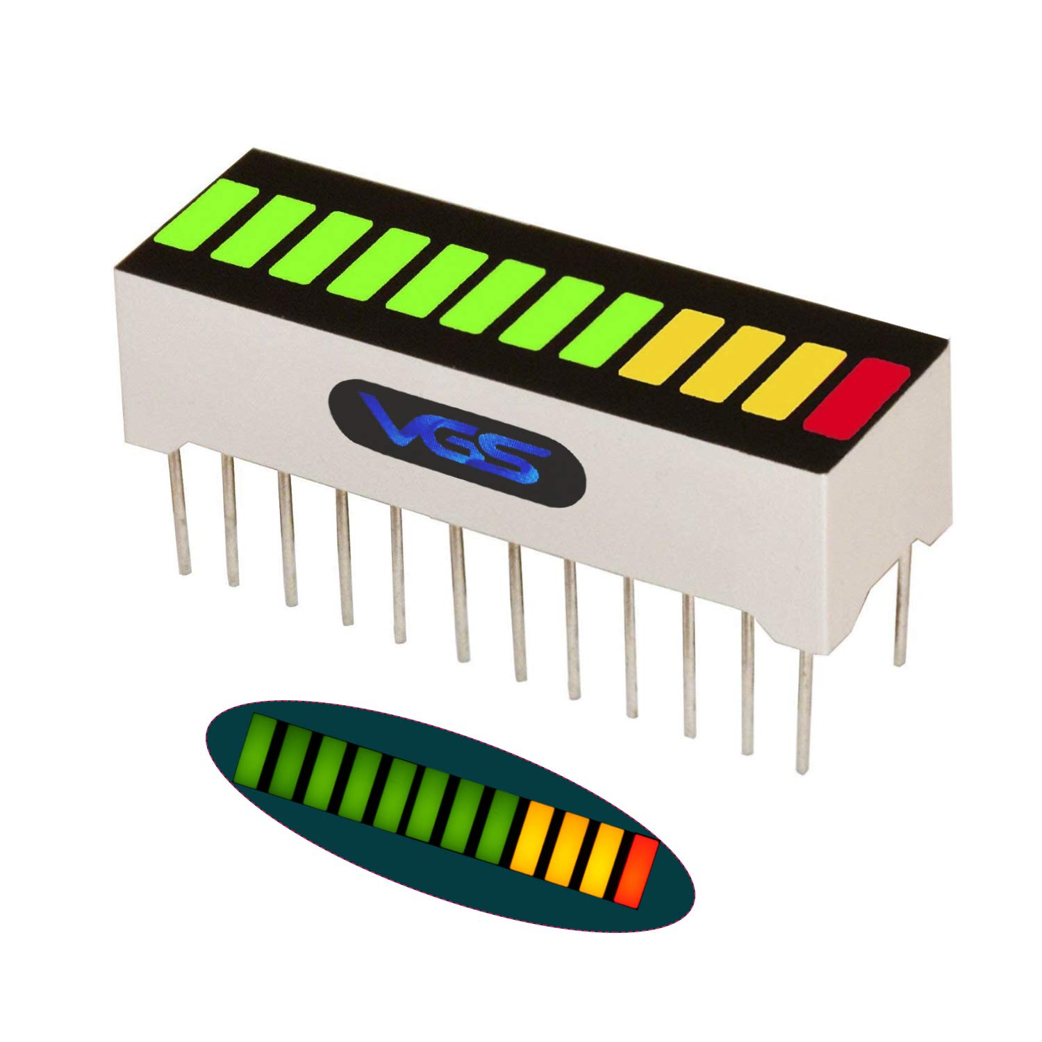 New 2pcs. 10 Segment LED Bar Graph Display 3 Colors(2xSuper Red+3xYellow+5xSuper Green) Single led bar Graph(DIY or Arduino) ARGY